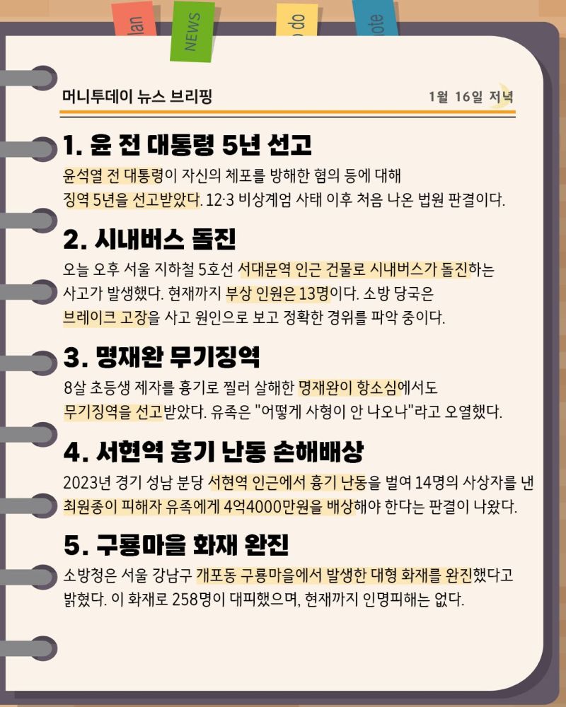 ] 머니투데이 뉴스 브리핑(1월15일아침)