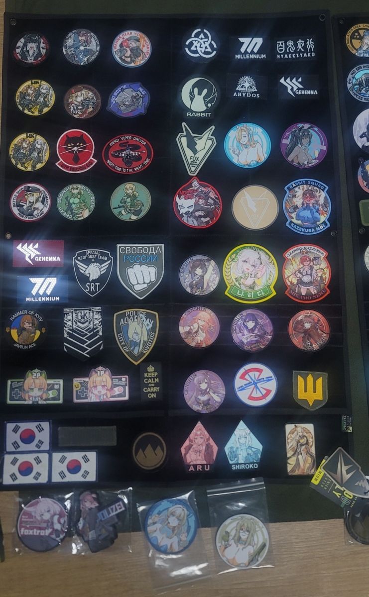 현역 때 쓰던 패치들부터 시작해서 우크라이나 패치에 오산 미 공군 부대 패치, 국제 관함식때 구한 타국 군함 패치
