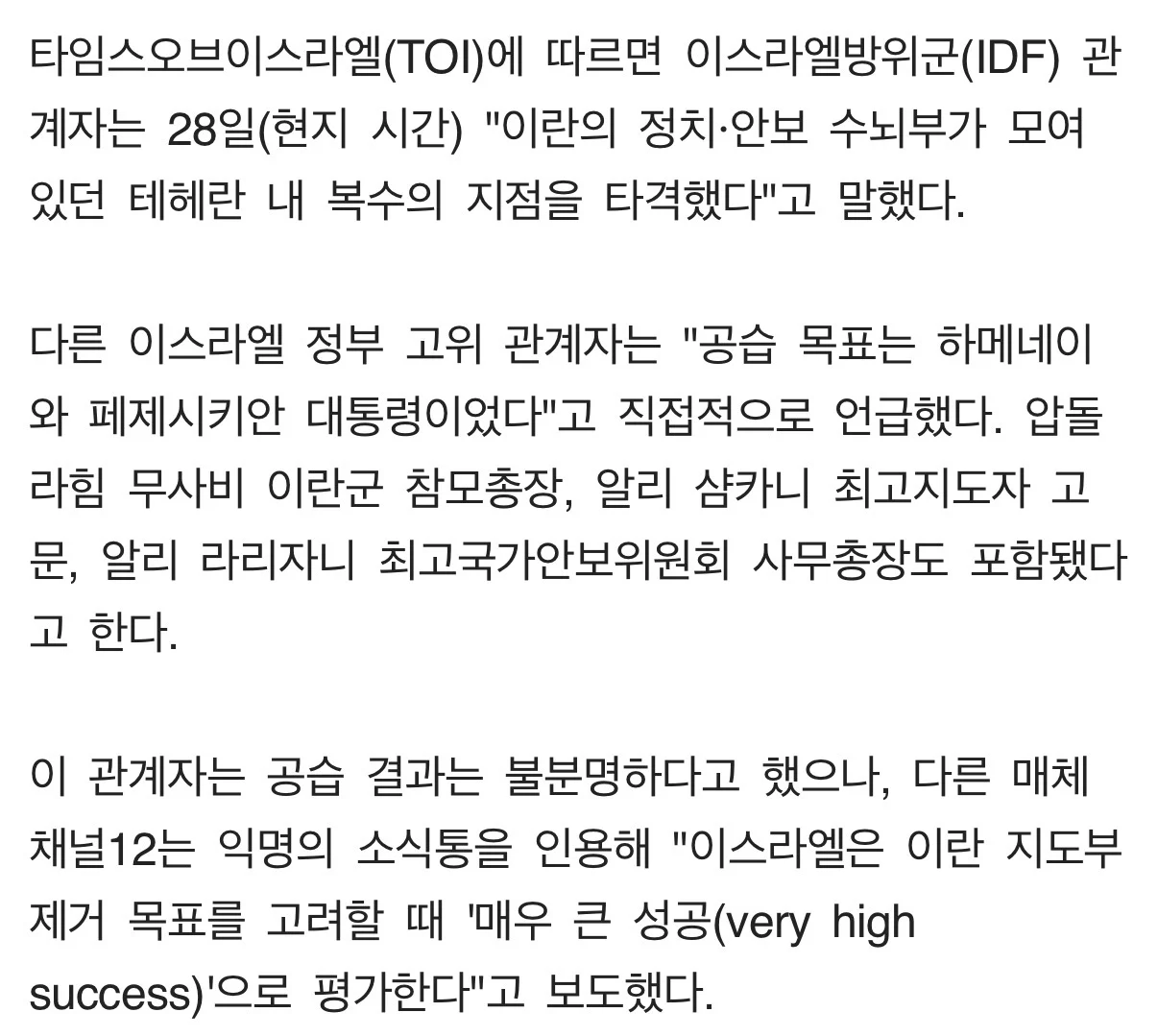 이란 대장과 그 가족, 수뇌부들은 몰살당한 상태고