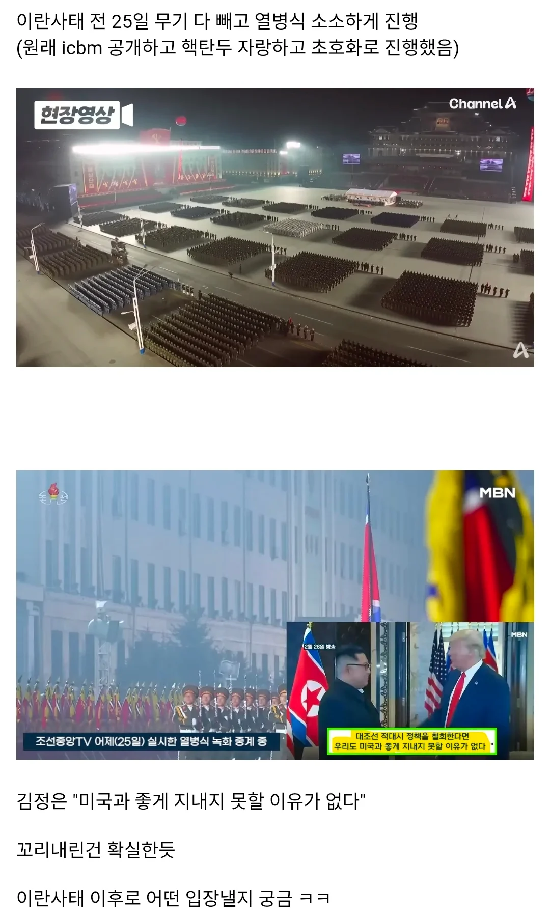 이란 국민들은 미국 잘한다고 박수치고 있고