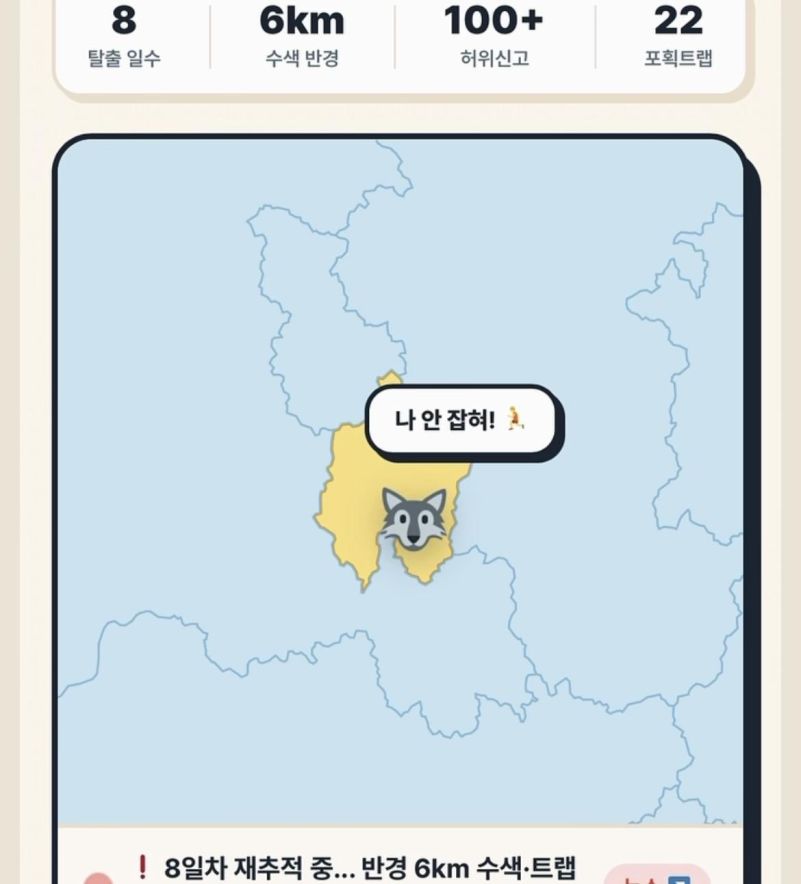 늑구를 찾긴 찾았네요!ㅎㅎ 그런데 도망감...