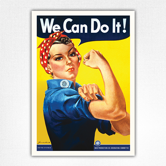 문제는 이런 사태는 남자들은 물론이고 여자들조차 익숙하지 않았다는 겁니다. 그래서 미국정부에서는 후방경제를 지탱하는 여성들의 사기진작을 위한 포스터를 제작했고 1943년 하워드 밀러가 웨스팅 하우스 전기공장의 여성근로자들을 위해 작성한 포스터가 상단의 그림이었습니다.