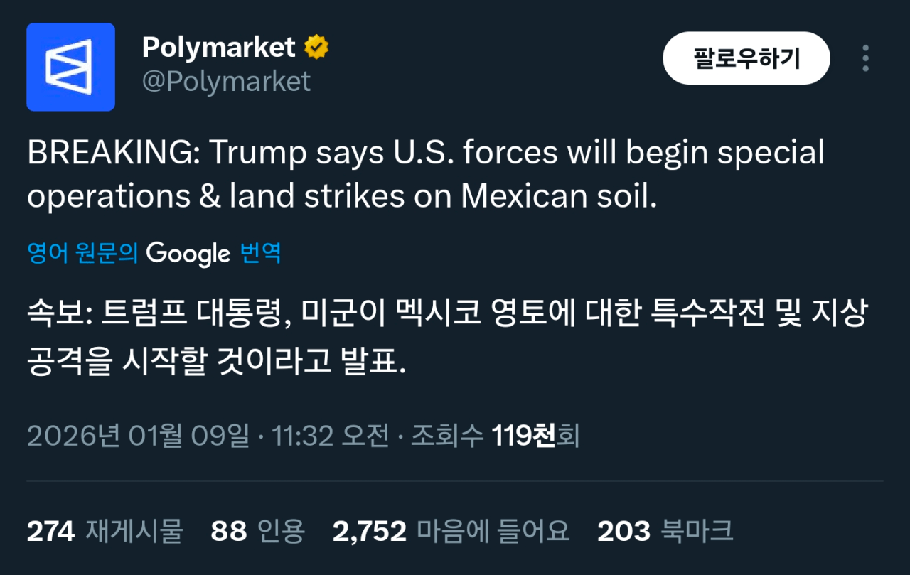 [속보] 트럼프, 멕시코 영토에 대한 특수작전 및 지상공격 시작 명령