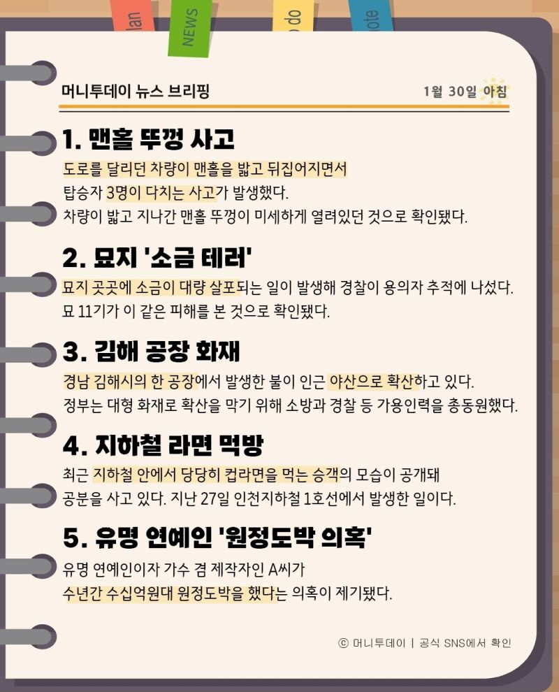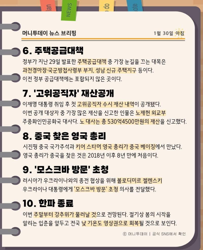 머니투데이 뉴스 브리핑(1월30일아침)