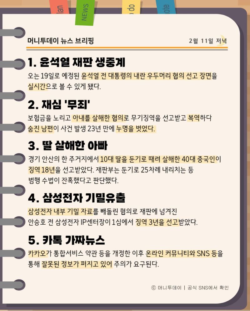 머니투데이 뉴스 브리핑(2월11일저녁)