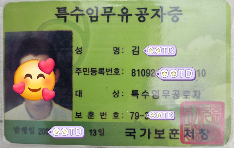사진들은 퇴역후 받은 특수임무유공자증입니다