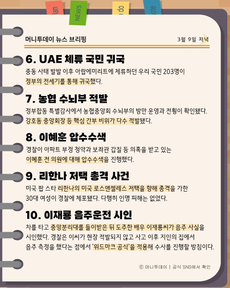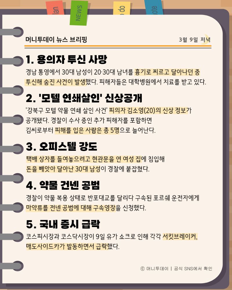 머니투데이 뉴스 브리핑(3월9일저녁)