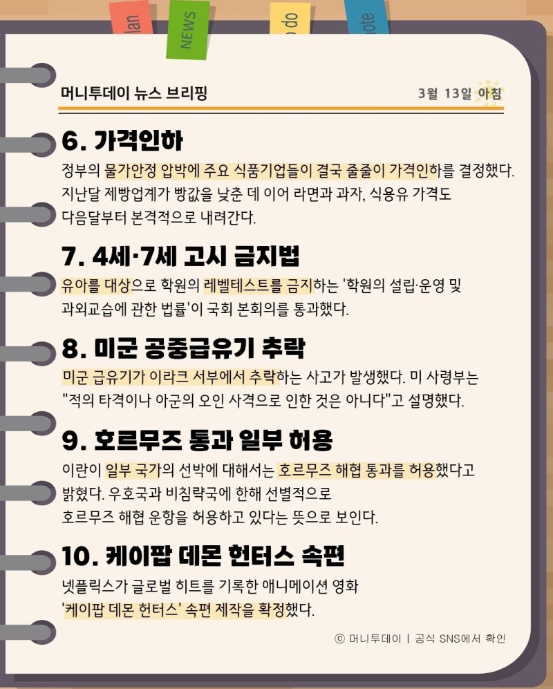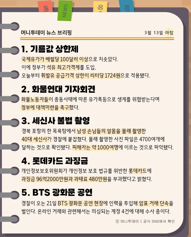 머니투데이 뉴스 브리핑(3월13일아침)