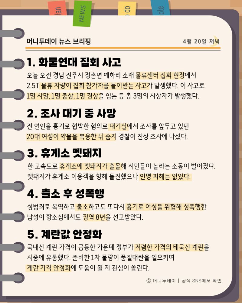 머니투데이 뉴스 브리핑(4월20일저녁)