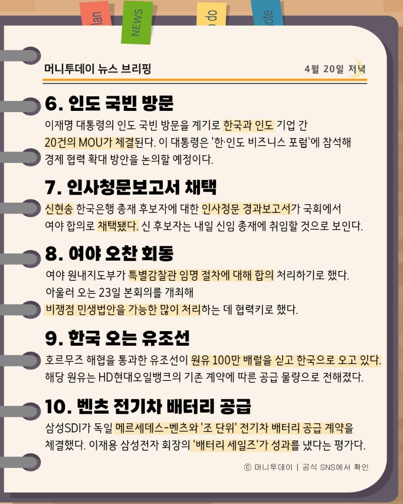 머니투데이 뉴스 브리핑(4월10일저녁)