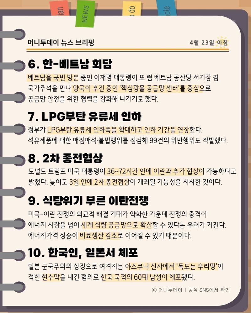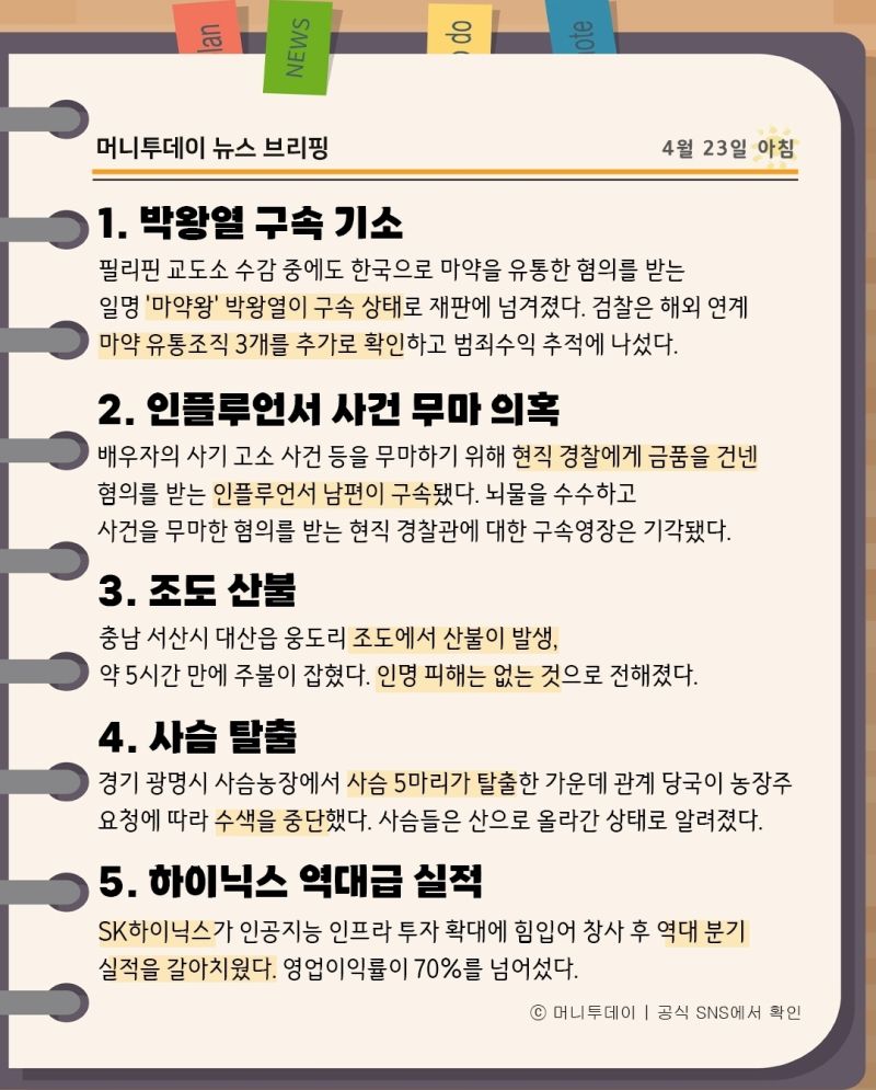 머니투데이 뉴스 브리핑(4월23일아침)