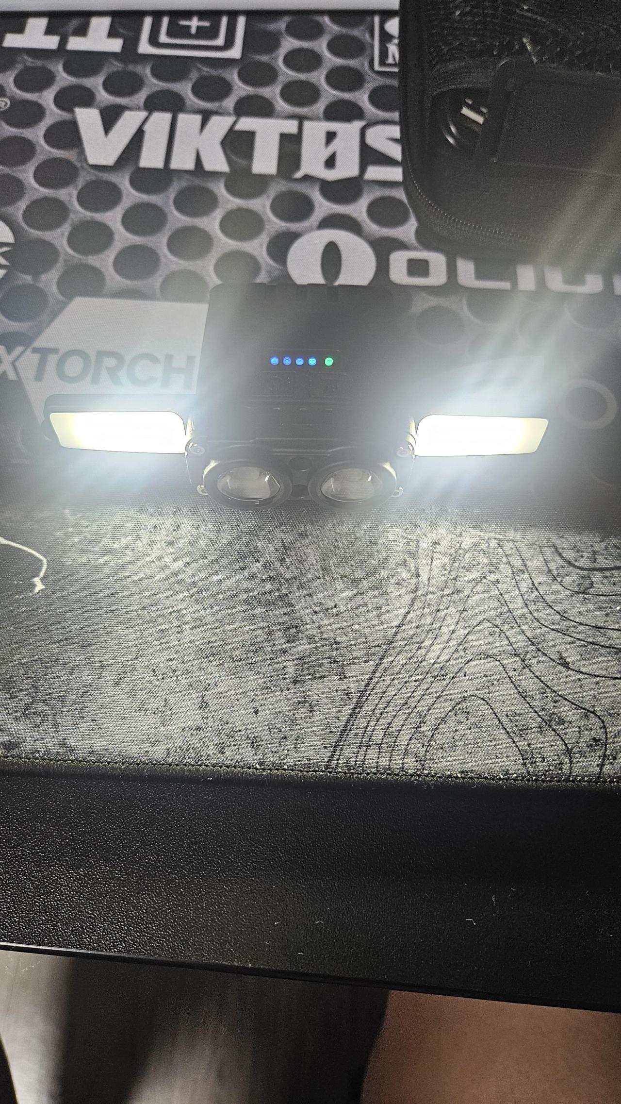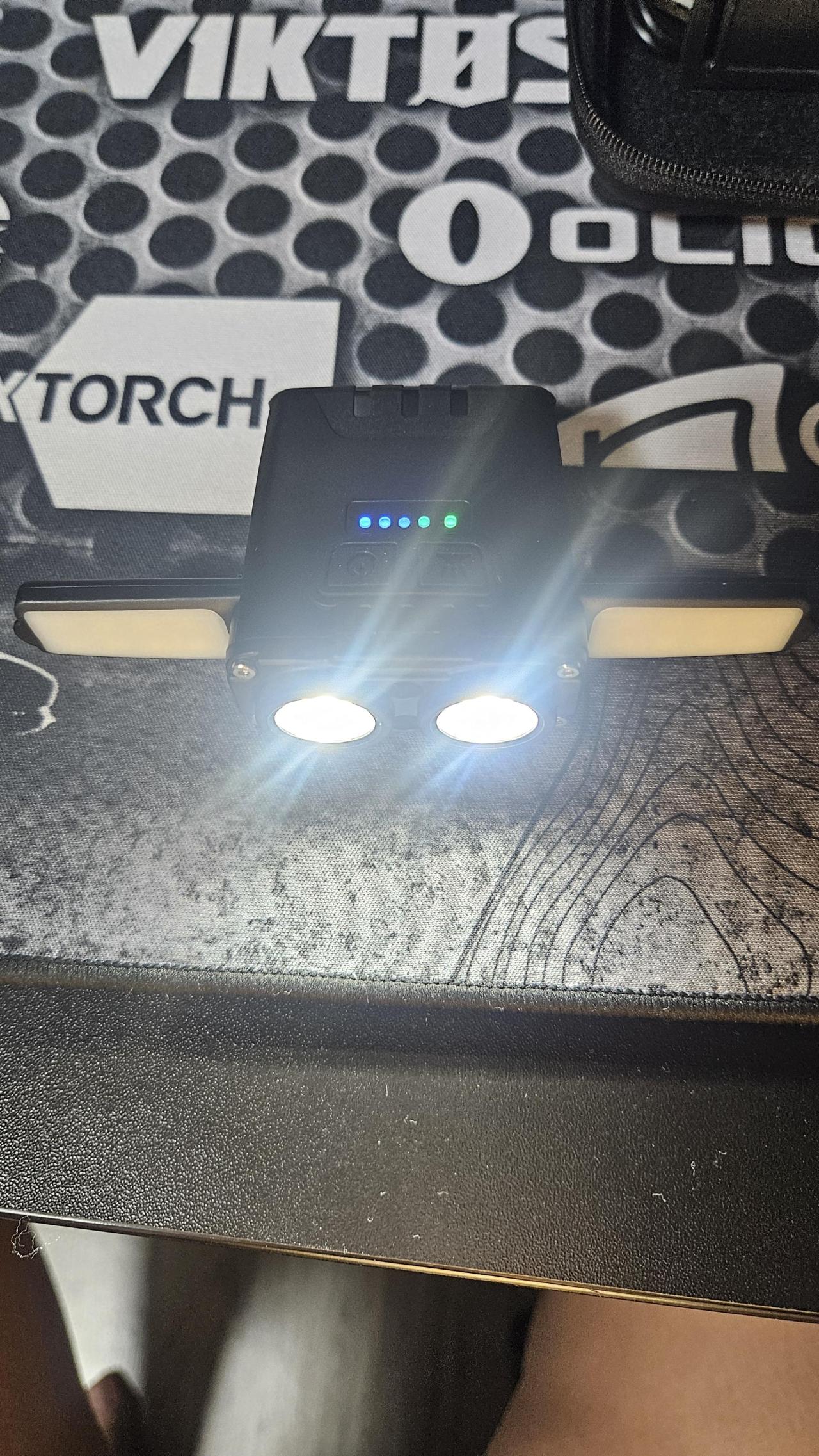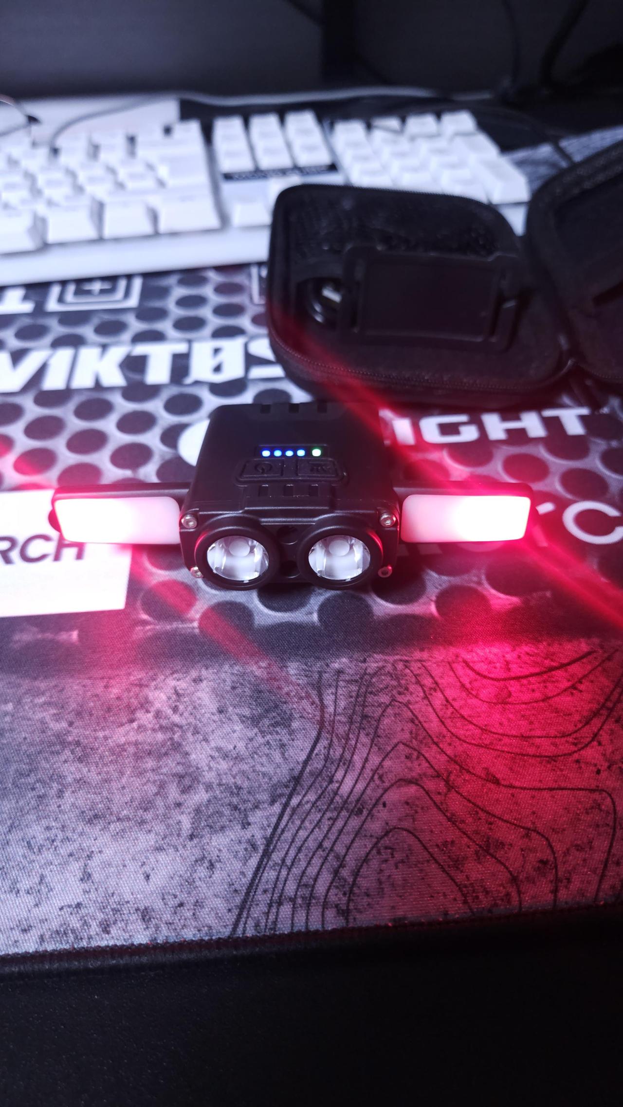 일반모드는 왼쪽 전원버튼을 짧게 누르면 전면 두개가 들어오고 전원버튼을 길게 누르면 측면 길게 누르면 붉은점멸등이 들어옵니다 짧게 전원 버튼을 누르면 그냥 꺼집니다