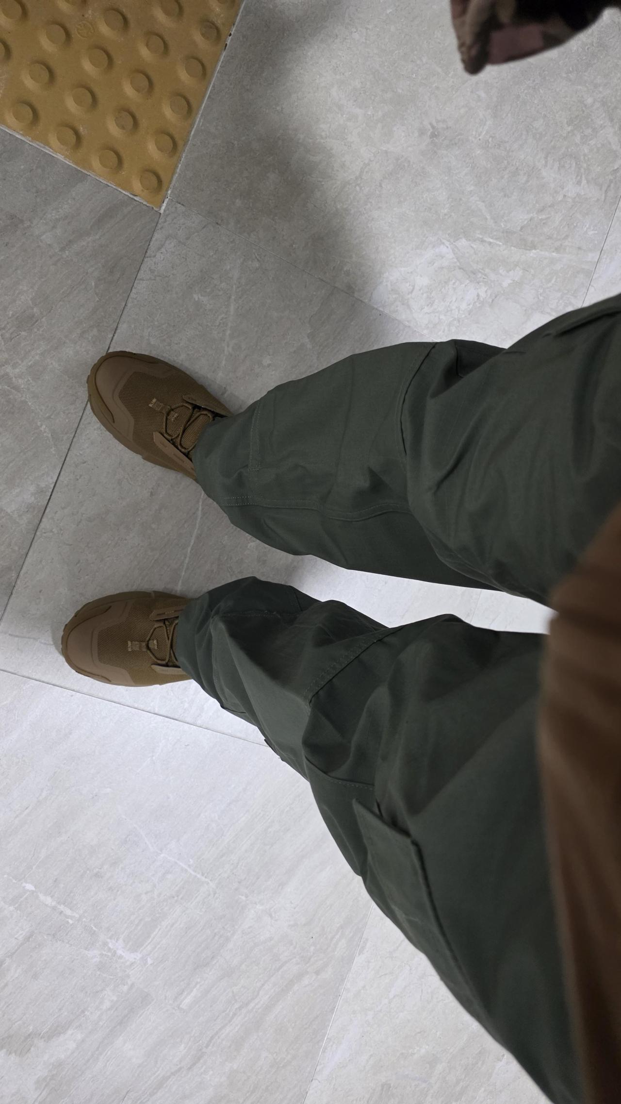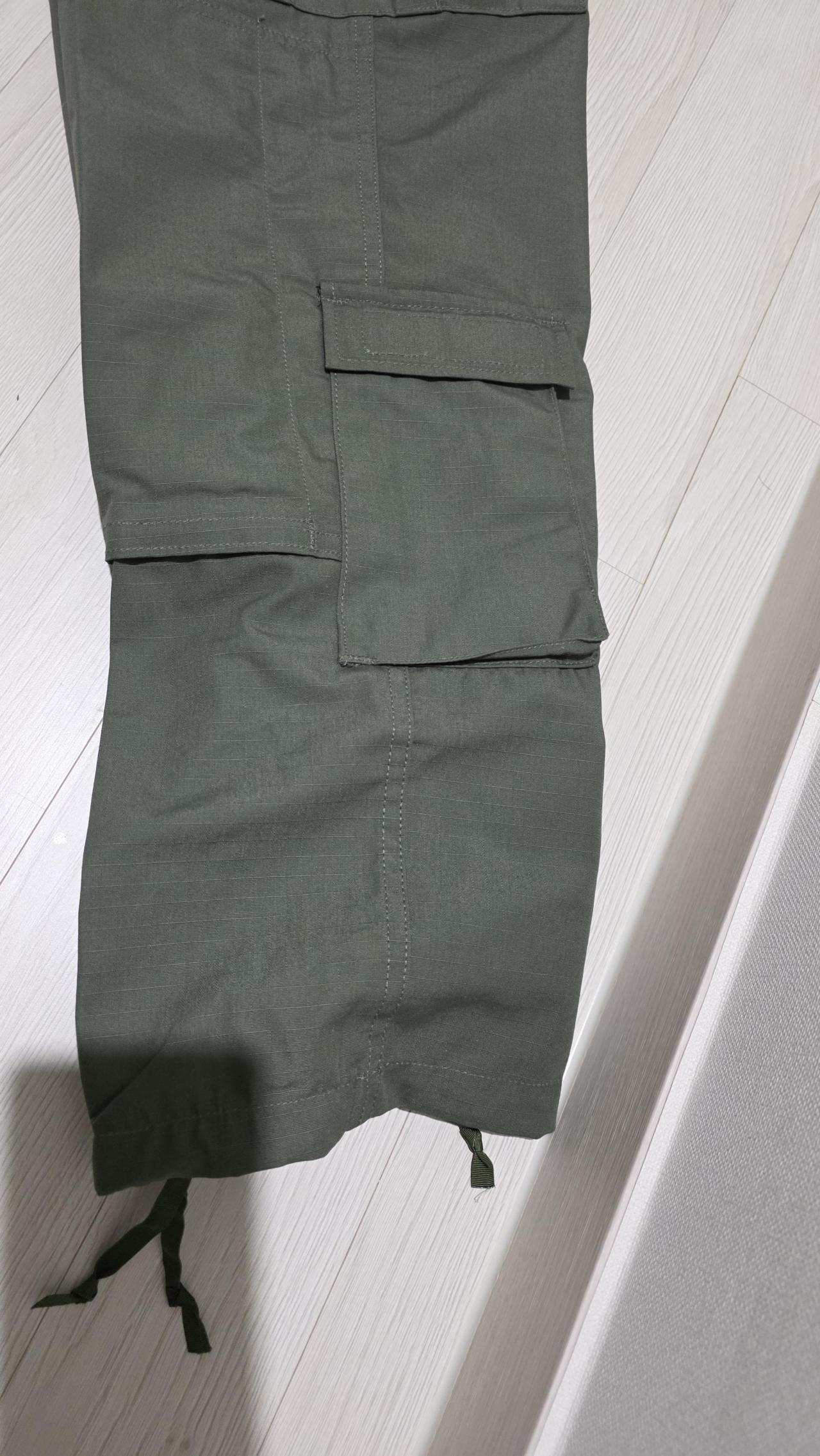 하나 딱 맞는 사이즈 하나 남았길래 구매했는데받아보니 생각보다 좋아서 마음에 듭니다프로퍼 전에 구매한 바지들 보다 더 디테일하게 디자인 되어있네요 카고 주머니도 조일 수 있게 되어있고다리 밑 쪽에도 카고 주머니가 달려 있습니다허리는 안쪽에 끈이 있고 단추 인 줄 알았는데 똑딱이로되어있네요 전체적으로 마음에 듭니다 지금은 입기 좀 얇은데 다른 색도 하나 더 구매할까 싶습니다.