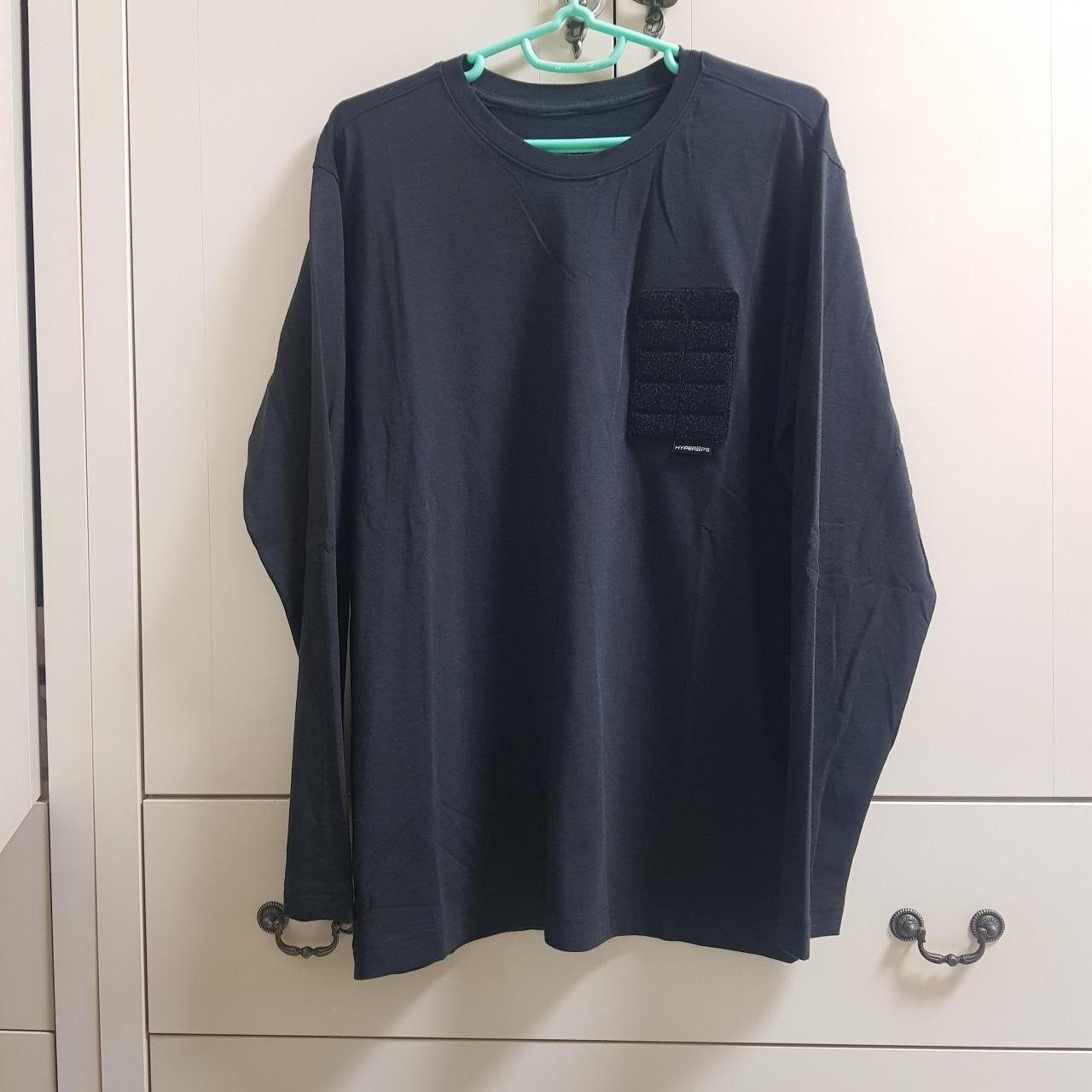 하이퍼옵스 엠브이 티셔츠. 면, 나일론 혼방 제품인데 면 티셔츠처럼 부드러운 촉감입니다. 간절기에 가볍게 입기 좋은 두께이며 디자인이 심플해서 일상용이나 운동용으로 착용하기 좋습니다.