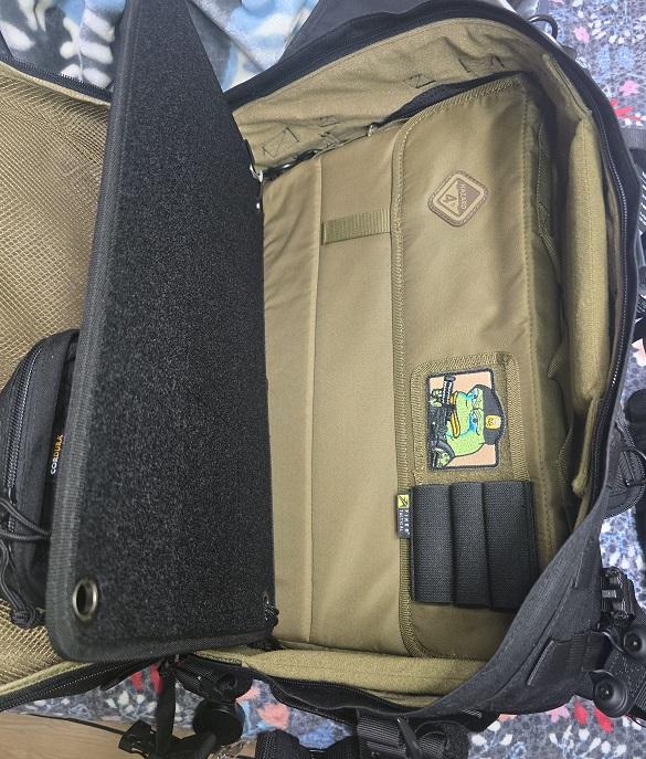 내부는 디브 리지드 백 디바이더 패널의 몰리에 유틸리티 파우치를 걸어놨고(위쪽에다 달까 했지만 결국 아래쪽에 설치함)