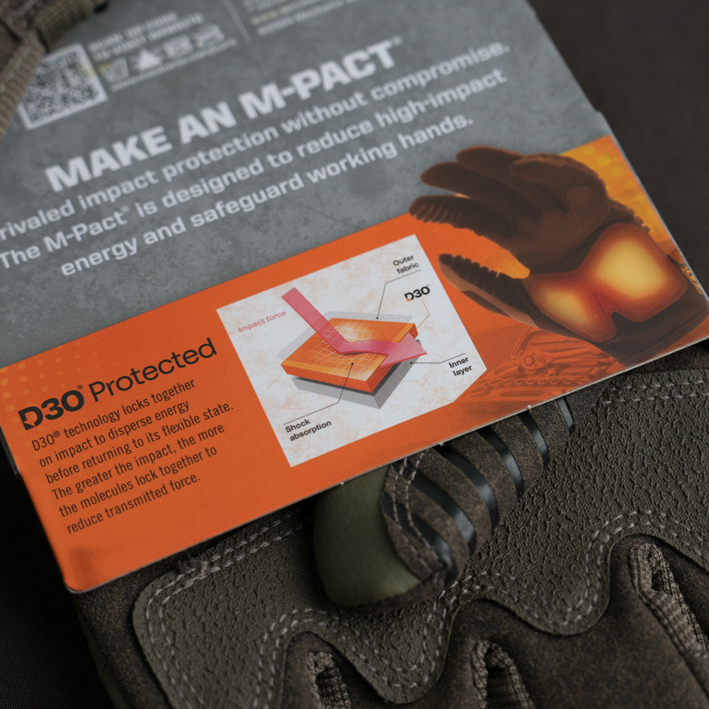 M-PACT 로고와 함께 강조된 Impact Protection, 그리고 D3O® 표기.