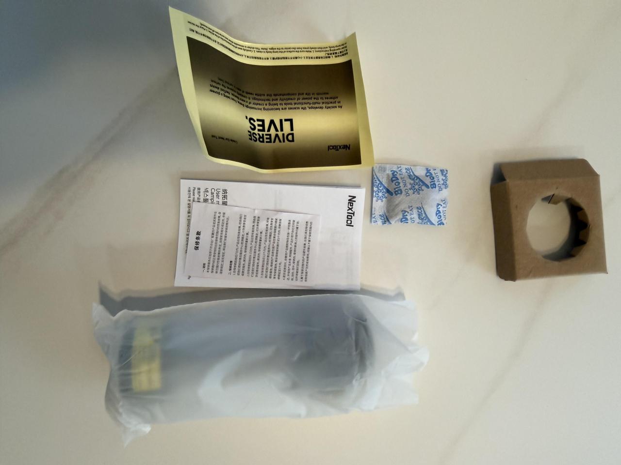손바닥만한 박스로 왔구, 개봉 시에는 본품과, 실리카겔, 스티커, 설명서 등이 들어있습니다