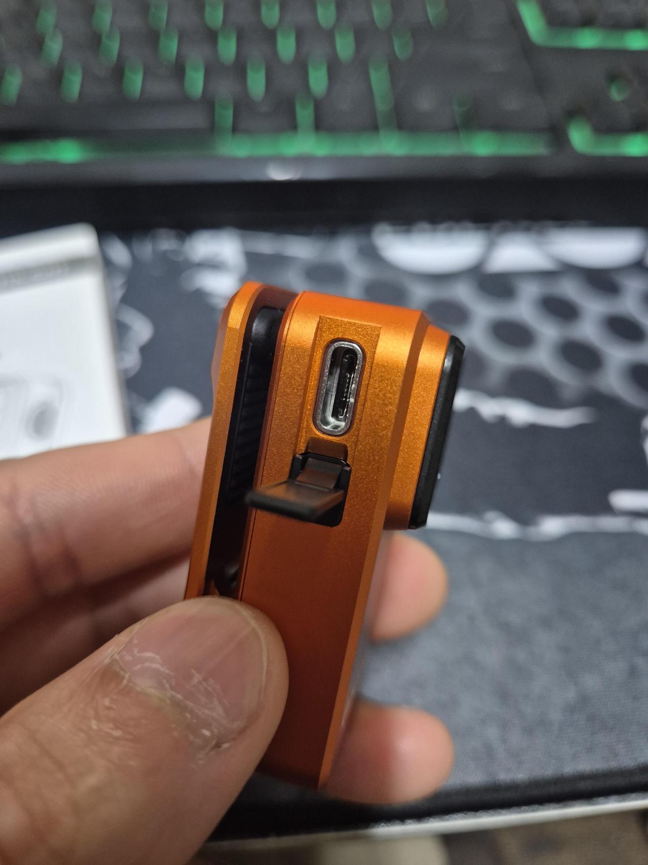 측면입니다. 충전 포트 가리개가 있어요.