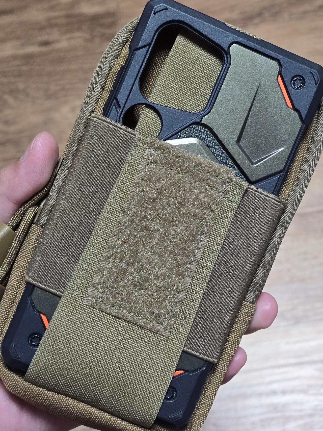 갤럭시 울트라에 UAG를 끼워도 들어가는 사이즈에지퍼 주머니 안에 넉넉한 수납공간도 있어서 딱 좋아요아웃도어 활동할때 편리합니다.아래는 낚시갔을때 실 착용사진입니다