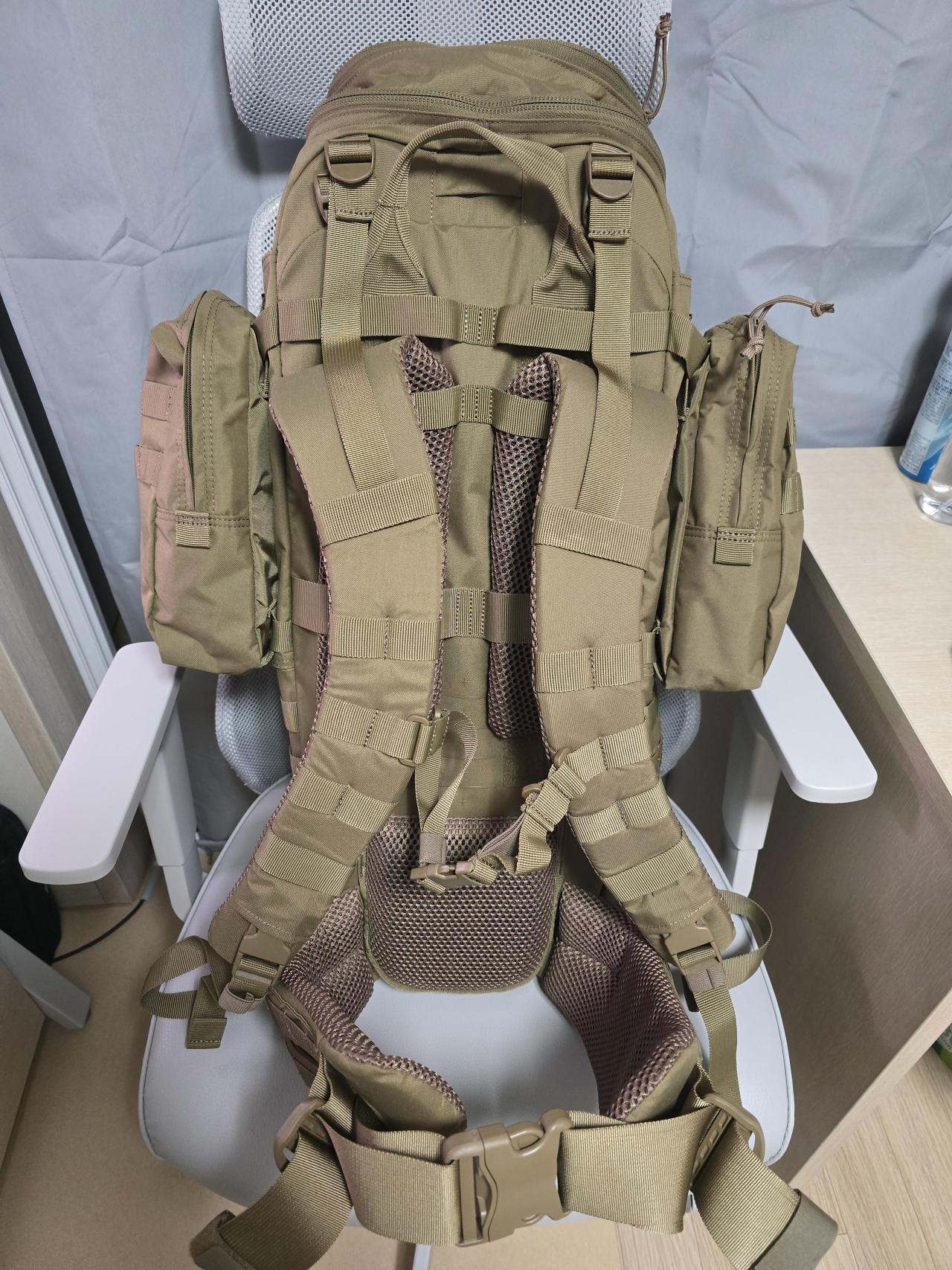 게다가 그 자체도 러쉬 티어 시스템인지 가방끈 두개가 사이드 파우치를 연결하며 뒤쪽으로 버클로 잠겨 있기에 버클을 풀면 사이드 파우치가 쳐지고 풀지 않더라도 끈 두개에 대충 걸려있기 때문에 낭창낭창 거립니다.
