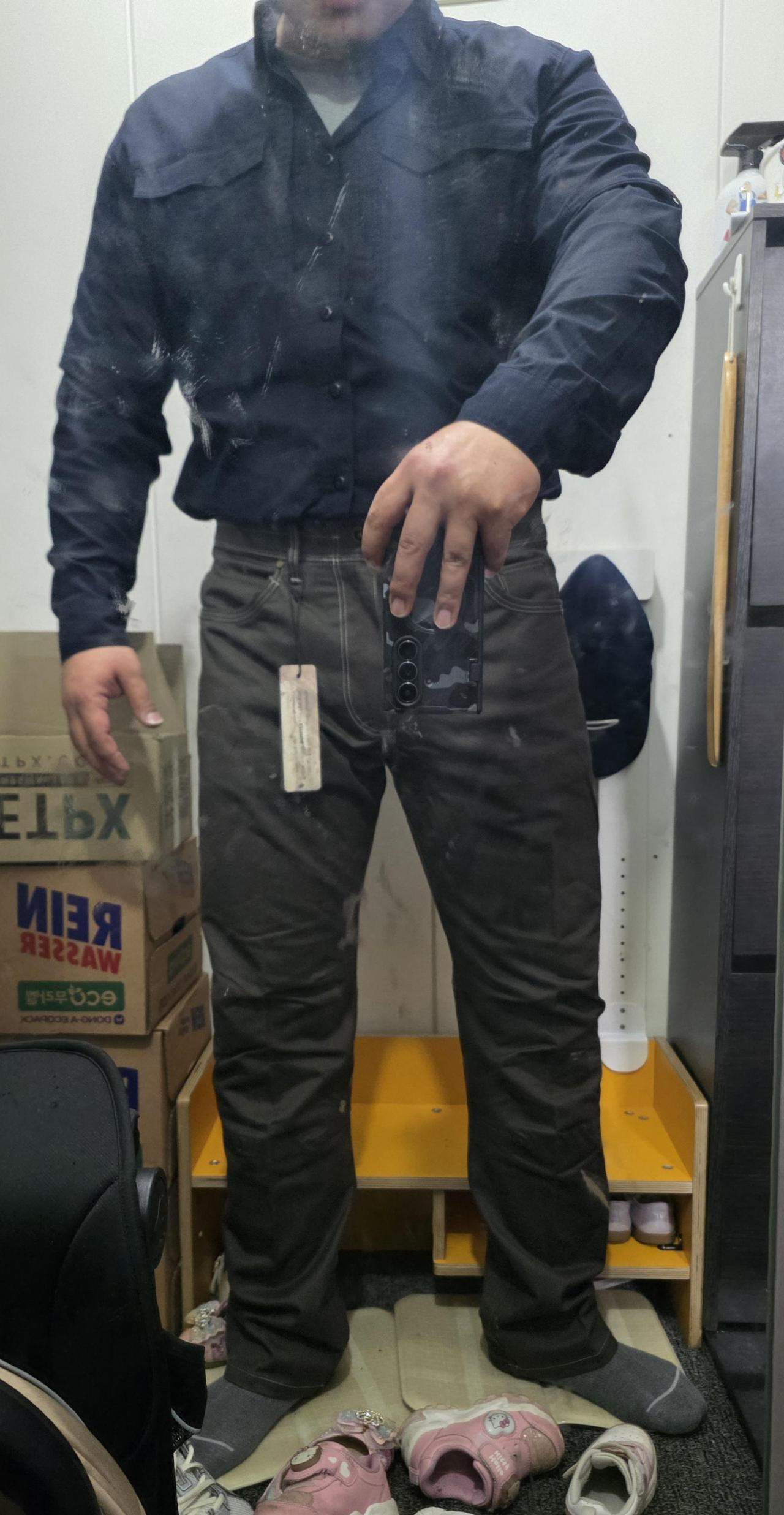평소 허리가 굵어서 ㅠ 38이 빡빡해서 평소 입는 바지 사이즈도 확인한 후 38을 선택했는데 받은 바지 허리가 너~~무 커서 황당했습니다 결국 돈 들여서 36으로 교롼해서 오늘 받았습니다 연휴 지난후 받을까봐 걱정 했는데 전에 도착했습니다 입어보니 36 도 좀 큰듯해서 긴장. 허리는 맞는데 단추 채웠을때 앞 부분이 좀 울어서 태가 좀 망가지는 실망감 ㅠ 하여튼 미국인들 사이즈는 모르것어요 나한테 맞는 사이즈ㅡ 헷갈립니다 하여튼 돈 들여서 교롼했으니 잘 있어야겠네요