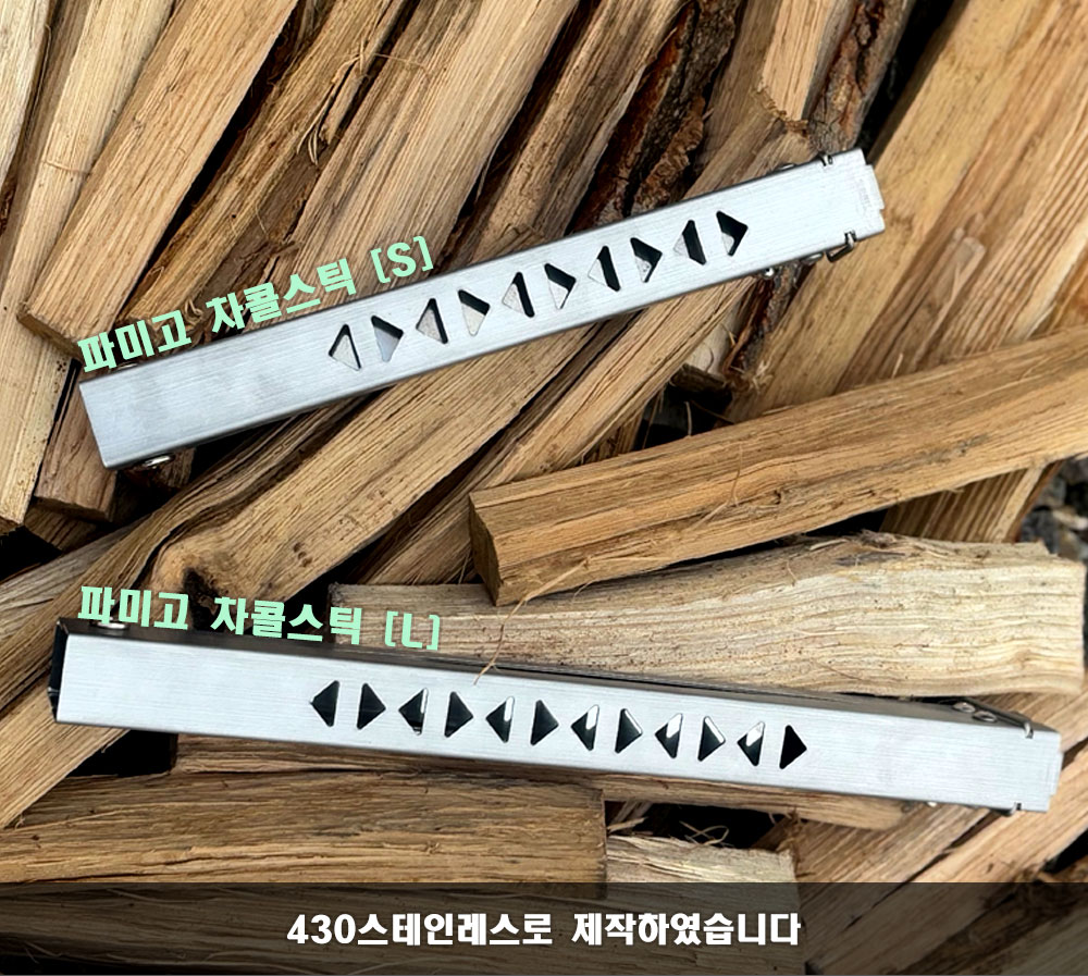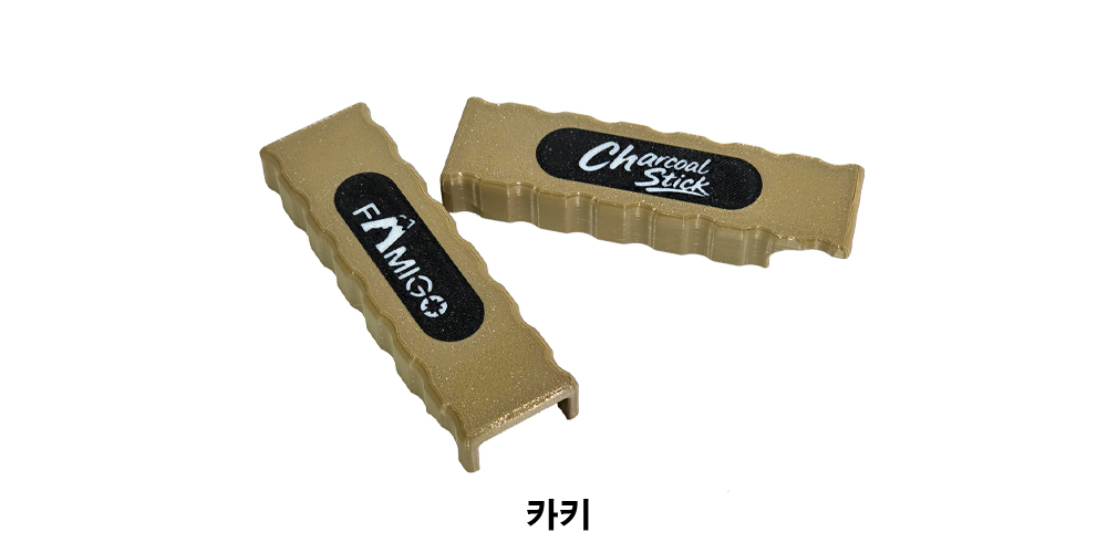 차콜스틱 대형에 카키 손잡이를 소형에 블랙 손잡이를 부착한 이미지 입니다.