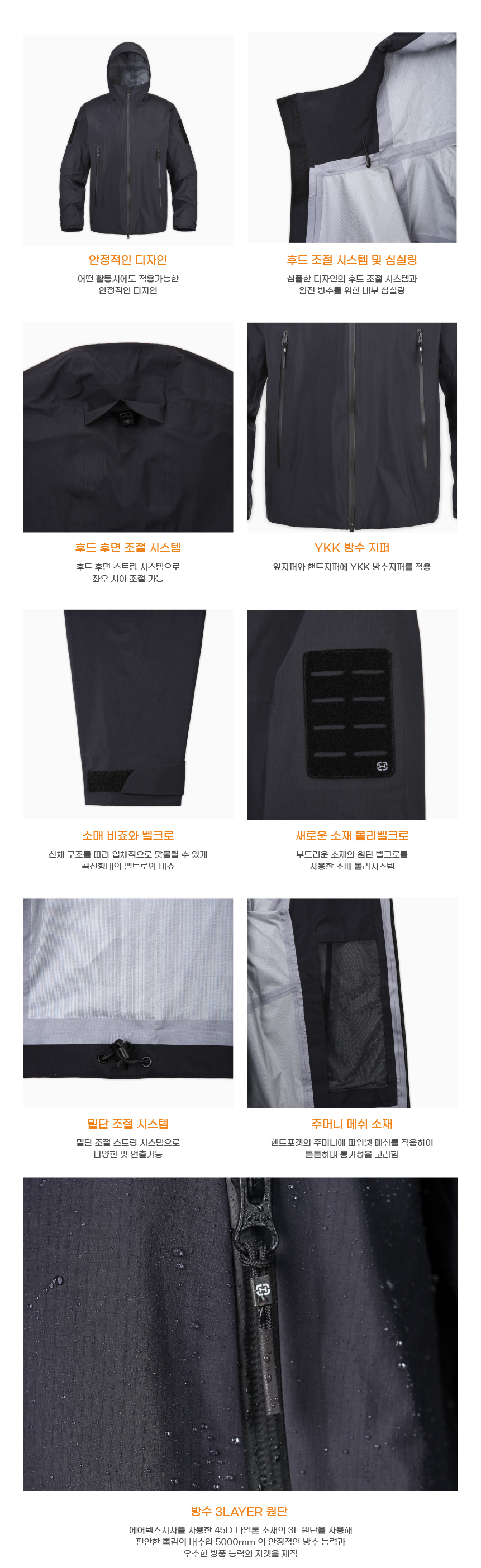 후드 조절 시스템과 완전방수 적용