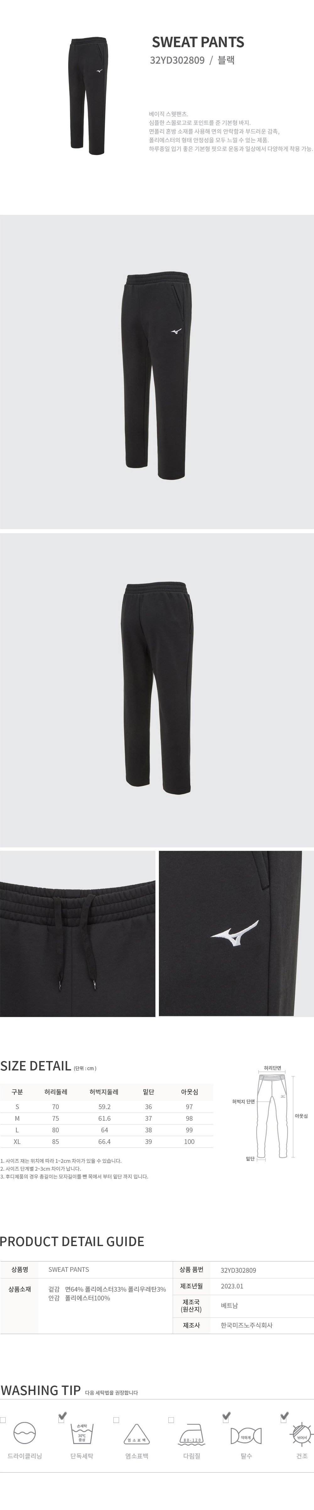 CQR 미즈노 스웨트 팬츠 32YD302809