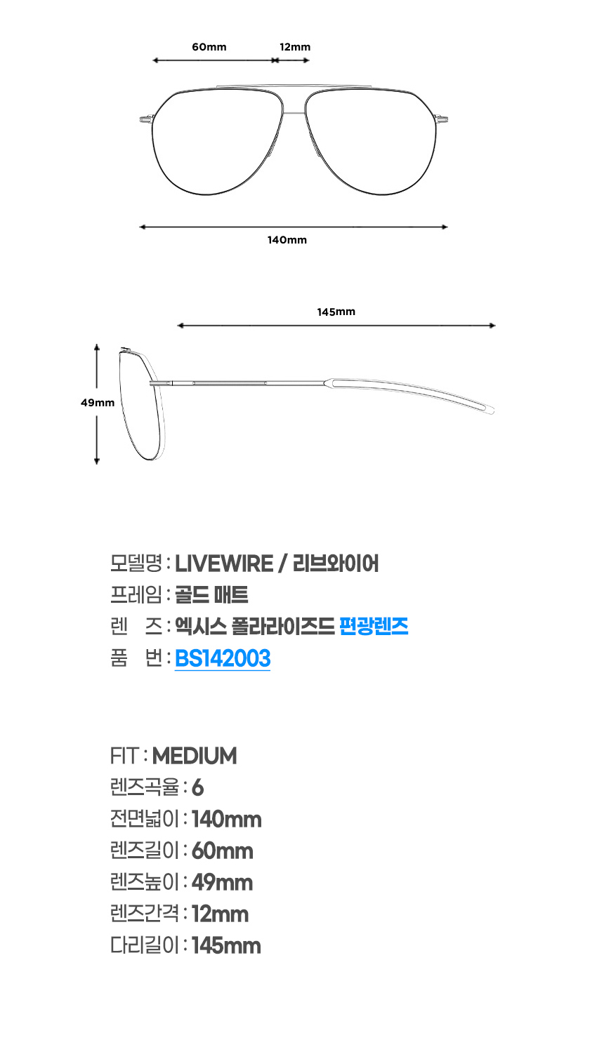 볼레 선글라스 리브와이어 골드 매트 / 엑시스 폴라라이즈드 편광렌즈 (BS142003)
