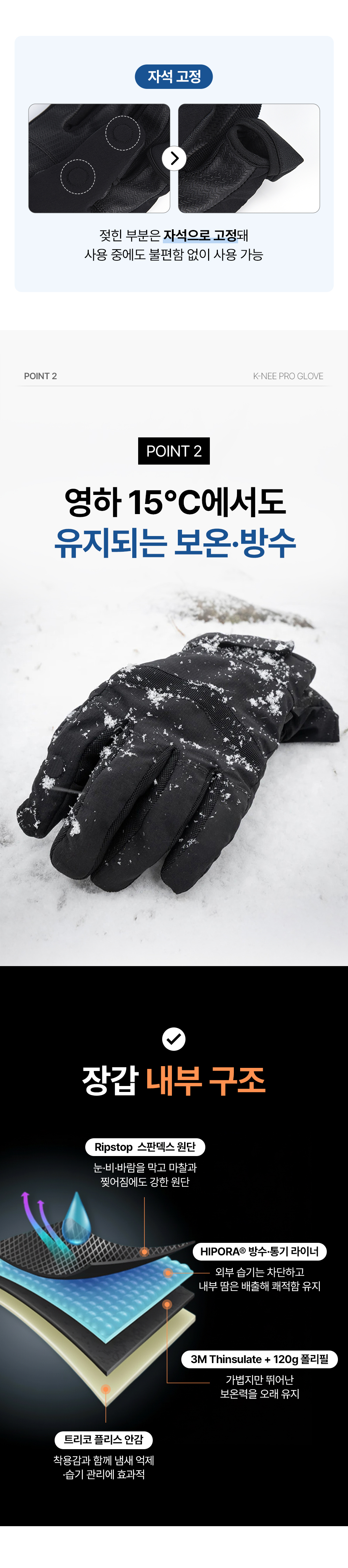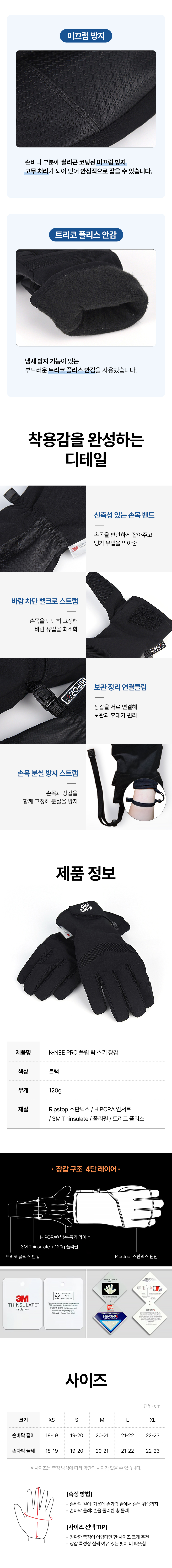 K-NEE PRO 플립 락 오픈 핑거 3M 소재 스키장갑
