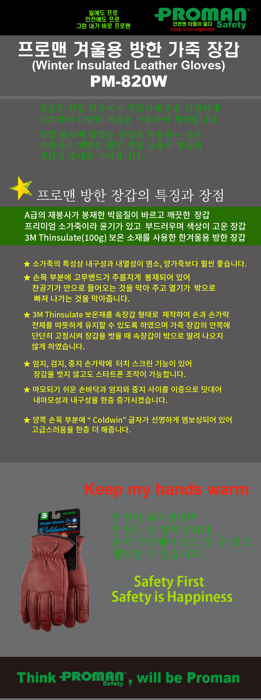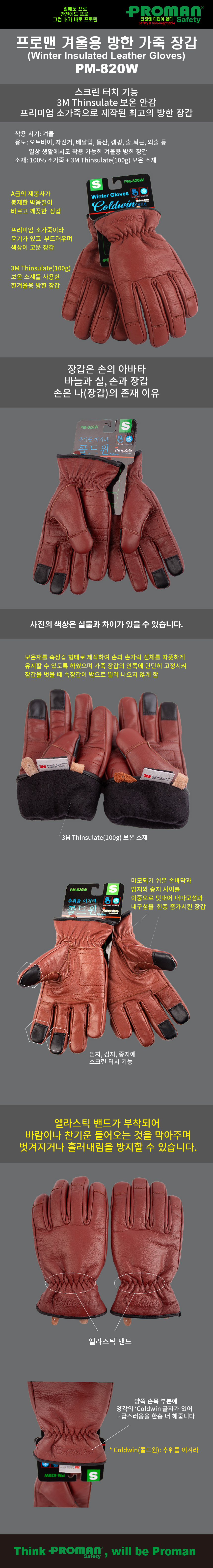 프로맨 방한용 겨울 가죽장갑 PM-820W