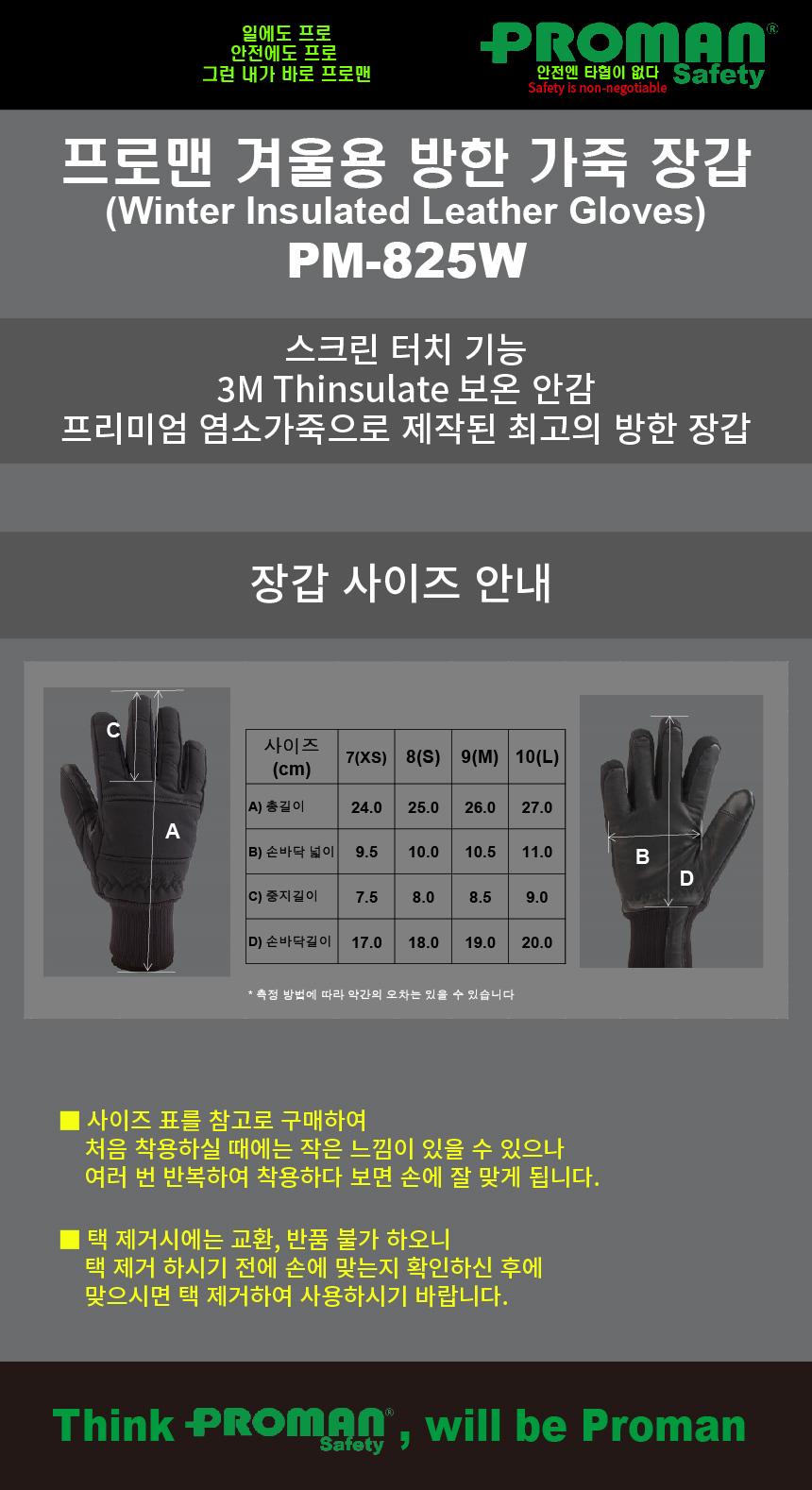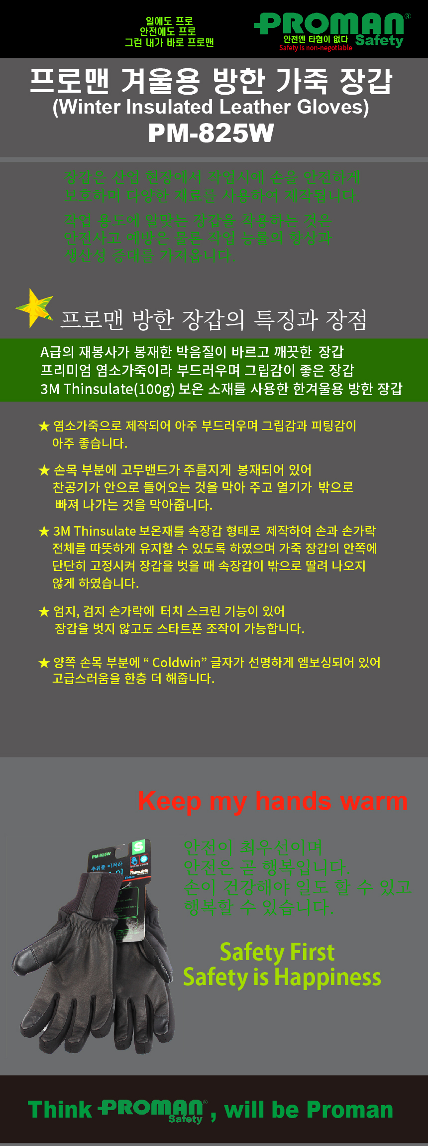 프로맨 방한용 겨울 장갑 PM-825W