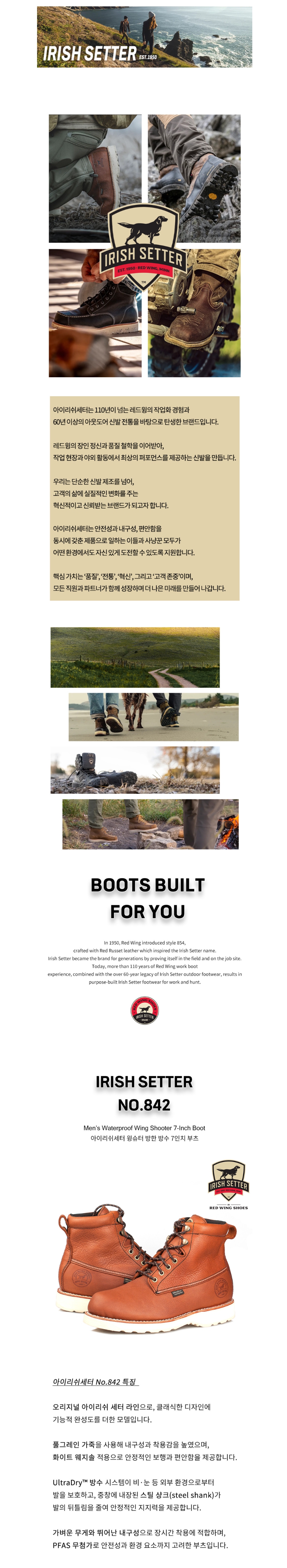 아이리쉬세터 7인치 방수 방한 부츠 842