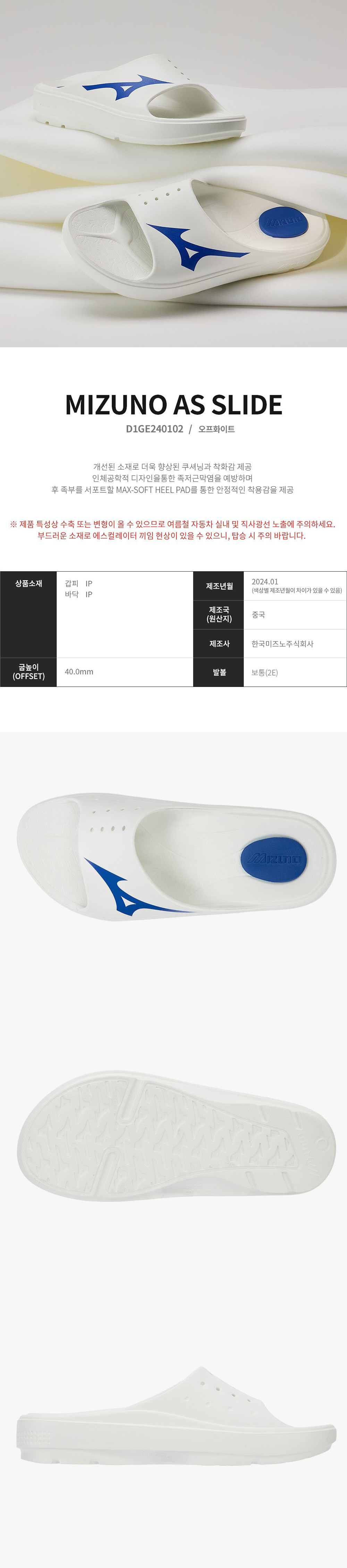 CQR 미즈노 소프트 힐패드 슬라이드 슬리퍼 D1GE240102