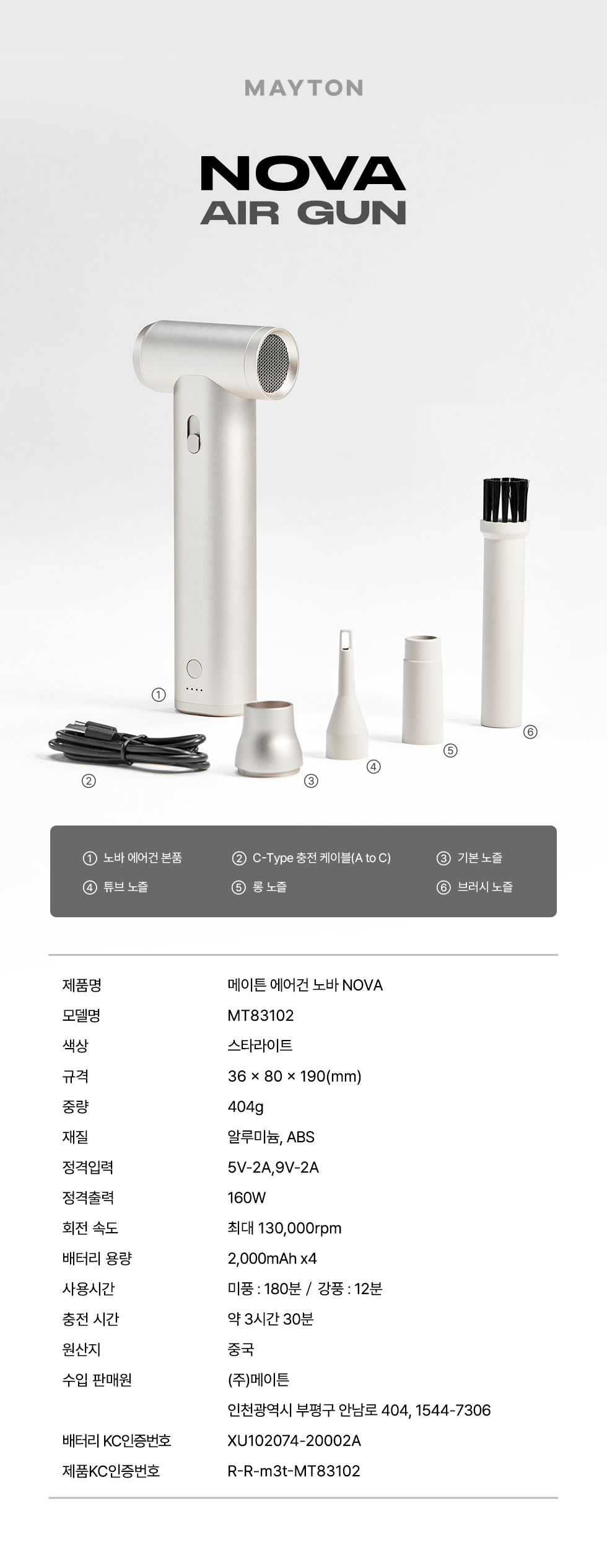 메이튼 무선 차량용 세차 캠핑 미니 초강력 에어건 노바