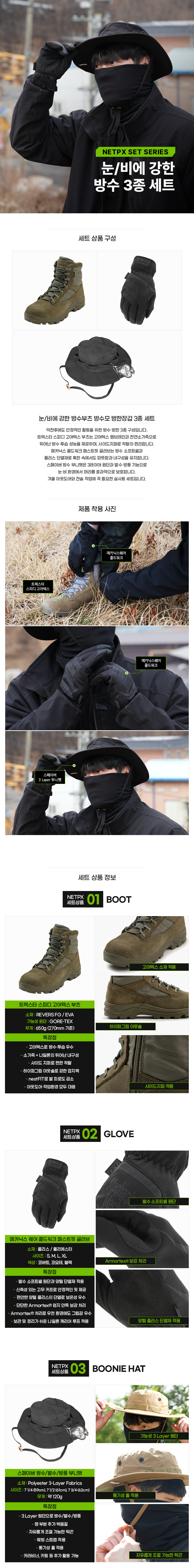 눈/비에 강한 방수부츠 방수모 방한장갑 3종 세트